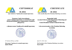 кандидат технічних наук, доцент, доцент кафедри маркетингу та економічної теорії