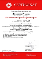 11.01.2022 – 11.04.2022 – Higher Institute of Insurance and Finance (VUZF University of Finance, Business and Entrepreneurship), Sofia, Bulgaria, International internship on "Modern Teaching Methods and Innovative Technologies in Higher Education: European Experience and Global Trend" (“Сучасні методи навчання та інноваційні технології в вищій освіті: європейський досвід та глобальні тенденції”), certificate № BG/VUZF/5486-086-2022 (180 hours / 6 credits ECTS)