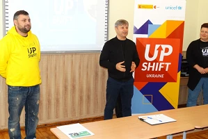 Програма UPSHIFT – це глобальна інноваційна програма ЮНІСЕФ, яка реалізується у понад 40 країнах Дитячим фондом ООН (ЮНІСЕФ). В Україні програма втілюється спільно з ГО «СКЦ «Задзеркалля» – української неурядовою громадською організацією, яка реалізує програму UPSHIFT на Кіровоградщині, Львівщині та Житомирщині.
